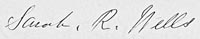 Sarah published her last Will and Testament in Brooklyn, New York. In the Will she left the remainder of her estate to her brother Alexander Dawson Henderson. She signed as Sarah Rebecca Wells 1016 Green Avenue, Brooklyn, N.Y. Source: Brooklyn Surrogate's Court, L, 517, P. 84. | |